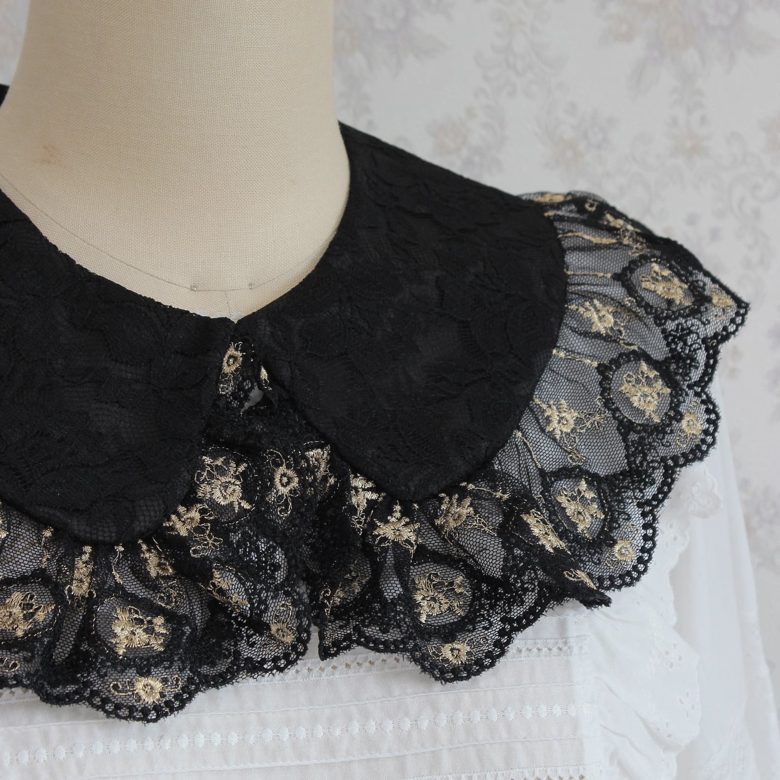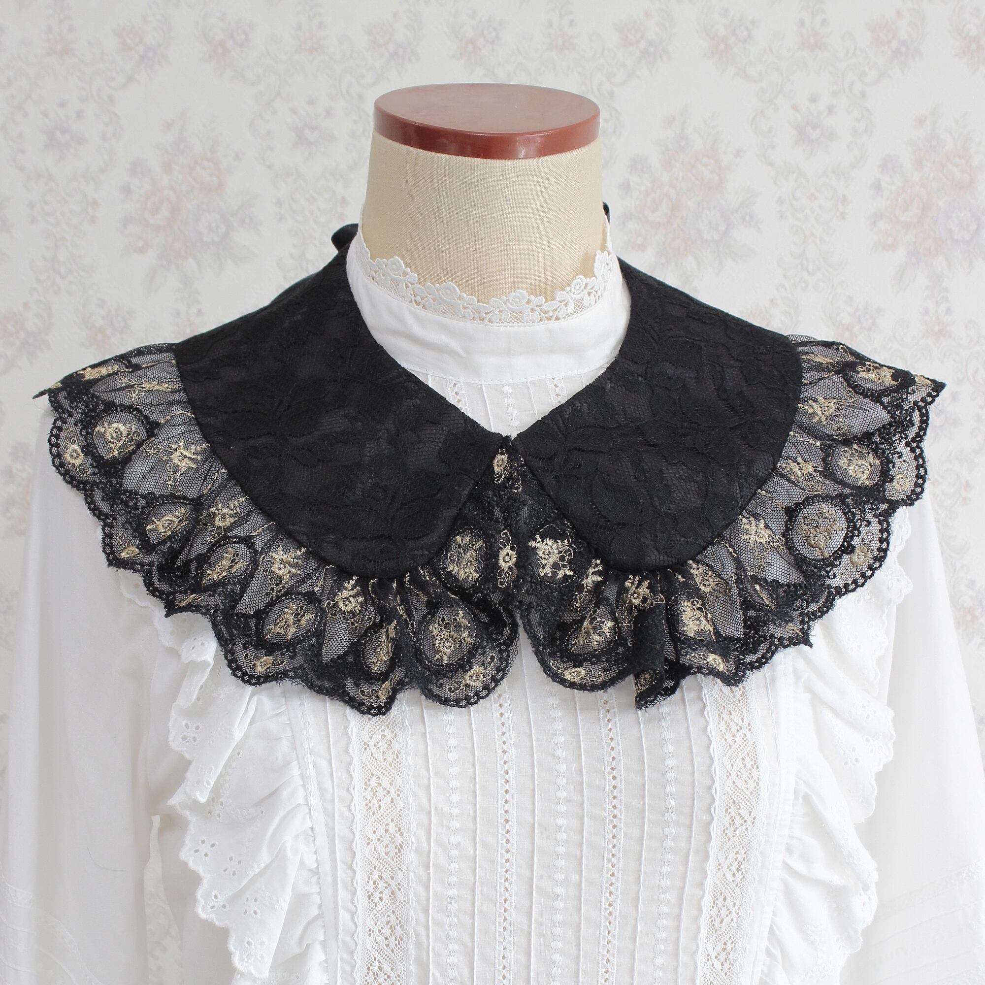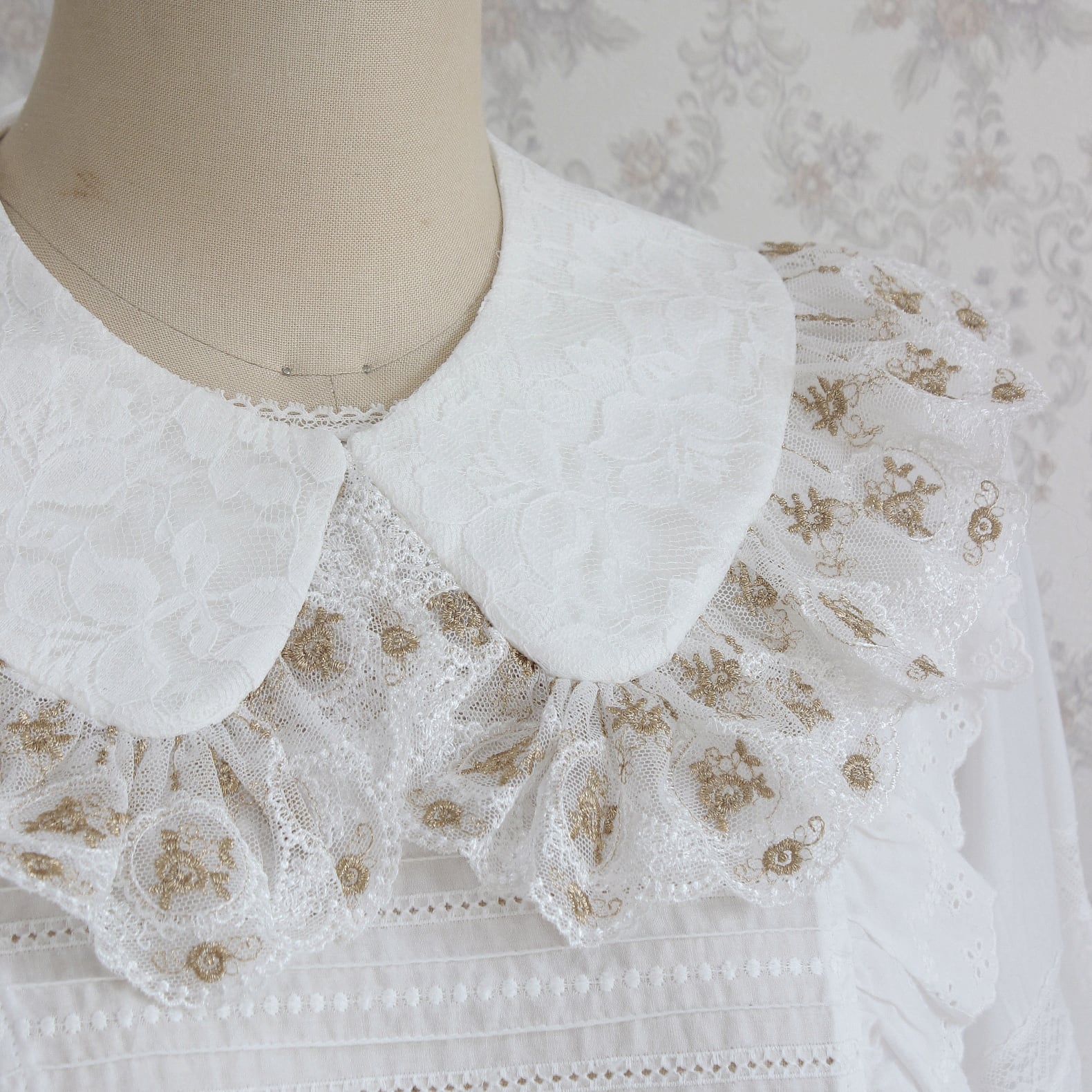 コードレース生地にチュールレースのフリルを合わせた丸襟です。