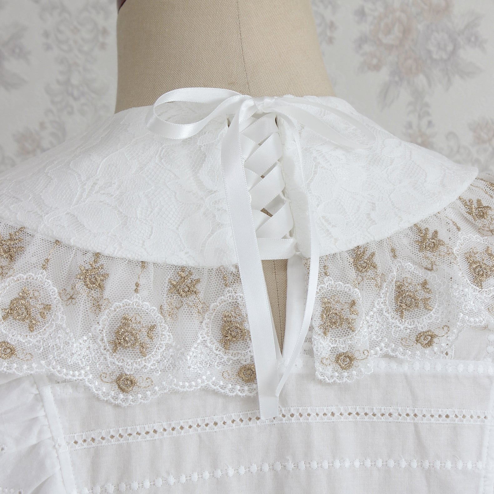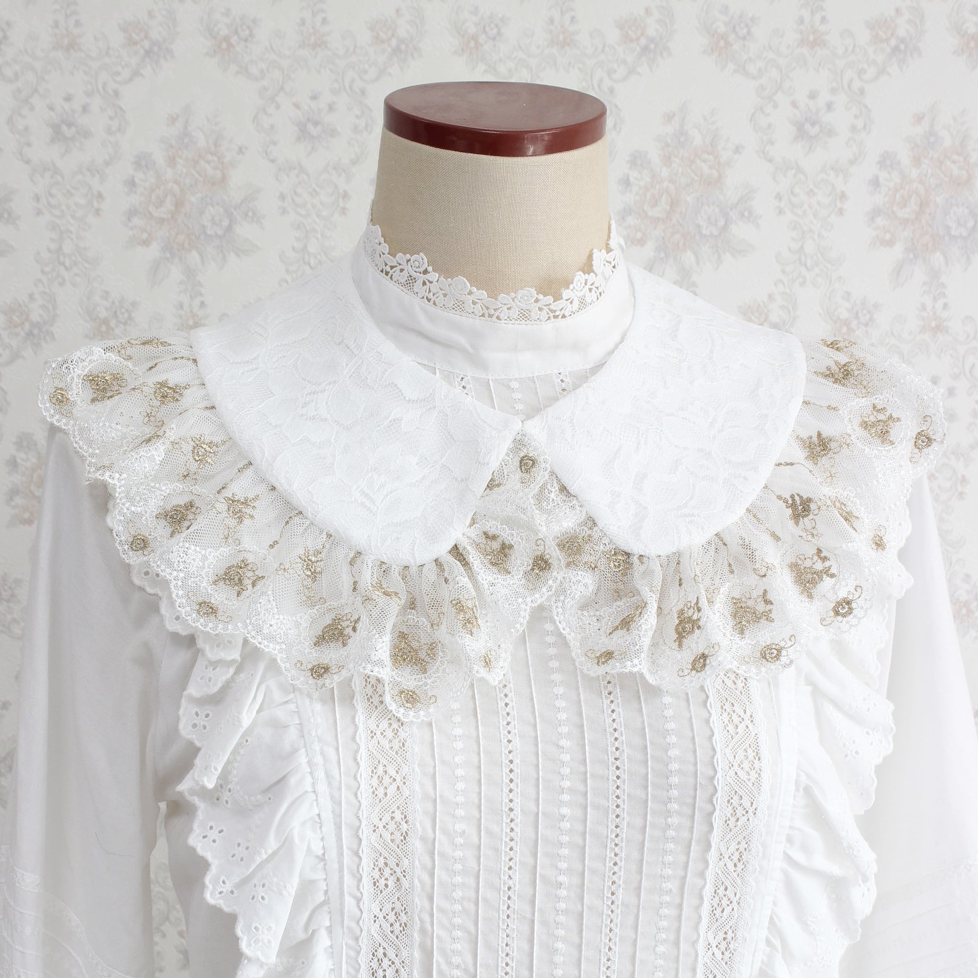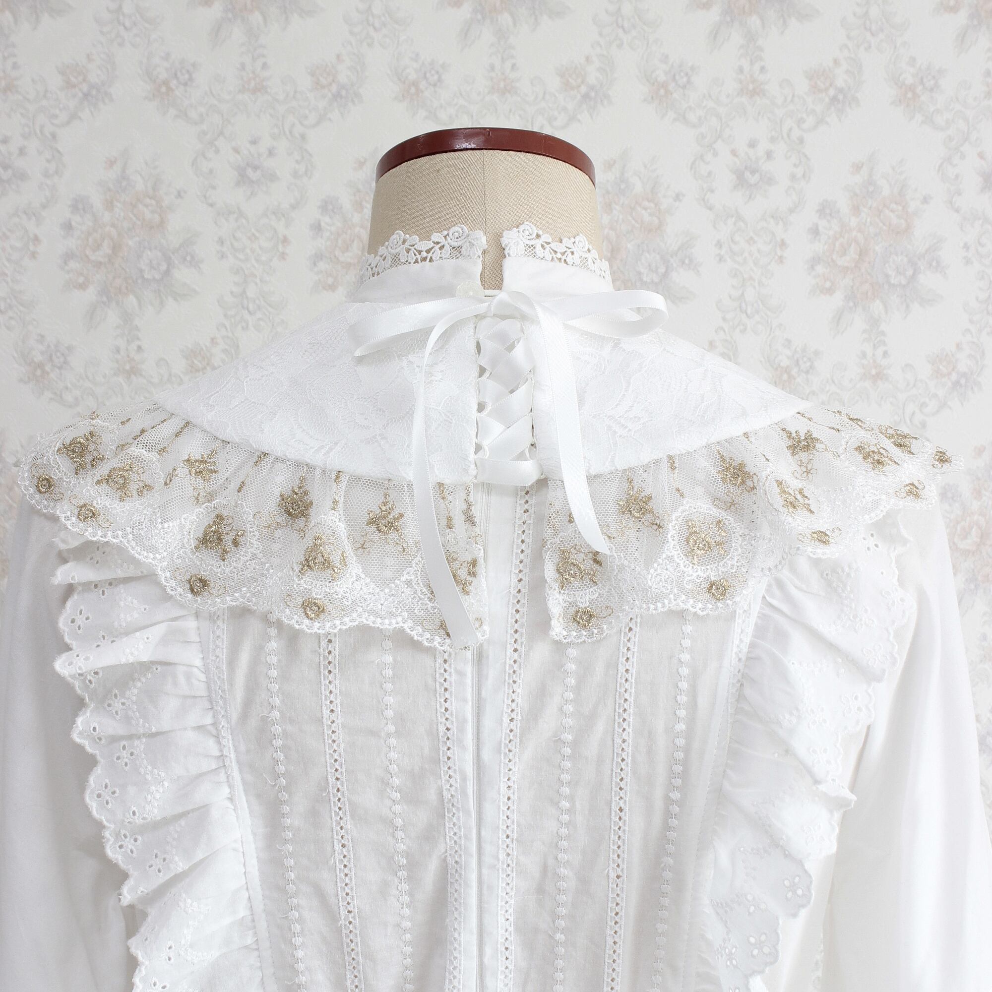 コードレース生地にチュールレースのフリルを合わせた丸襟です。