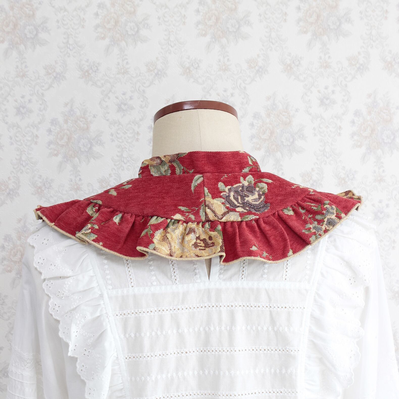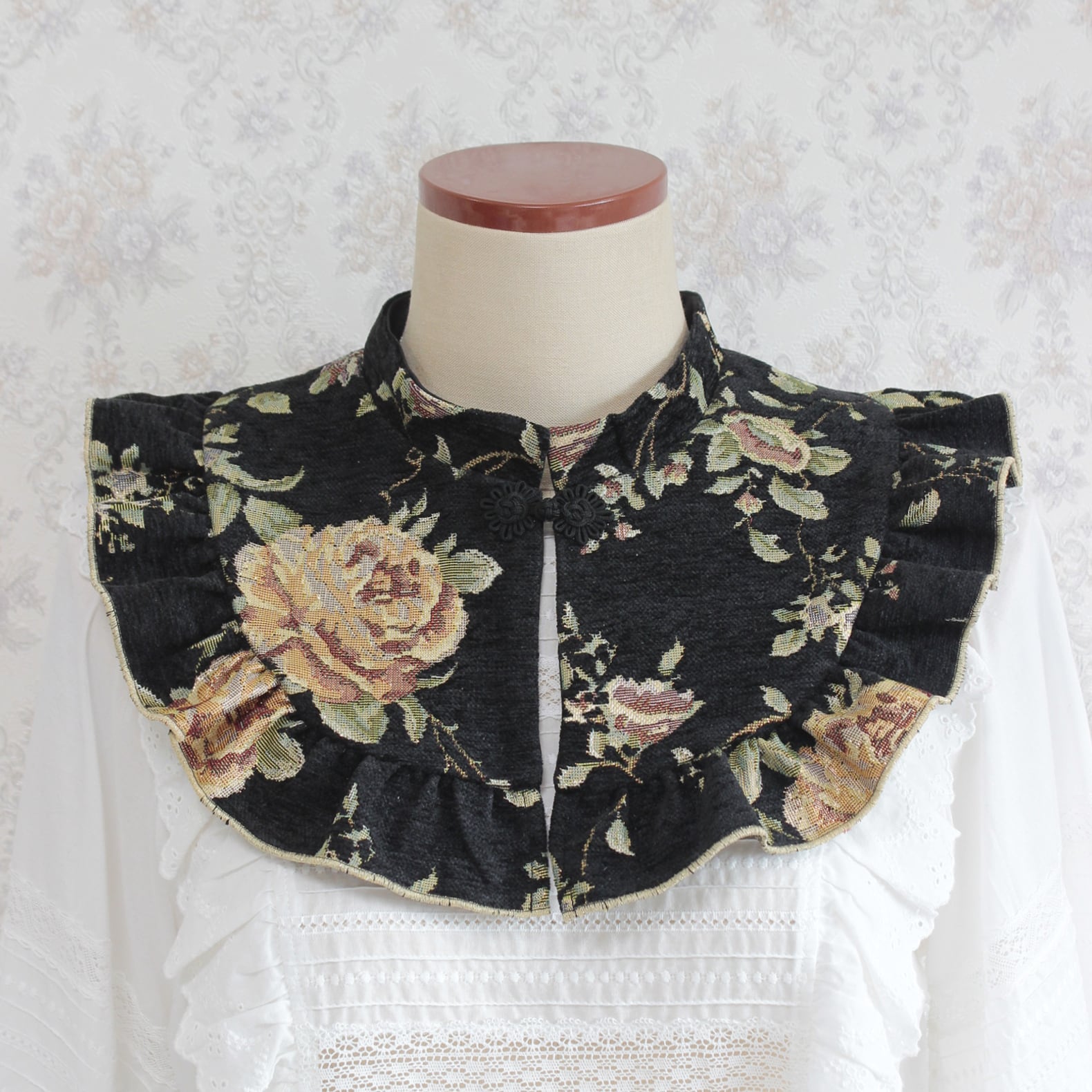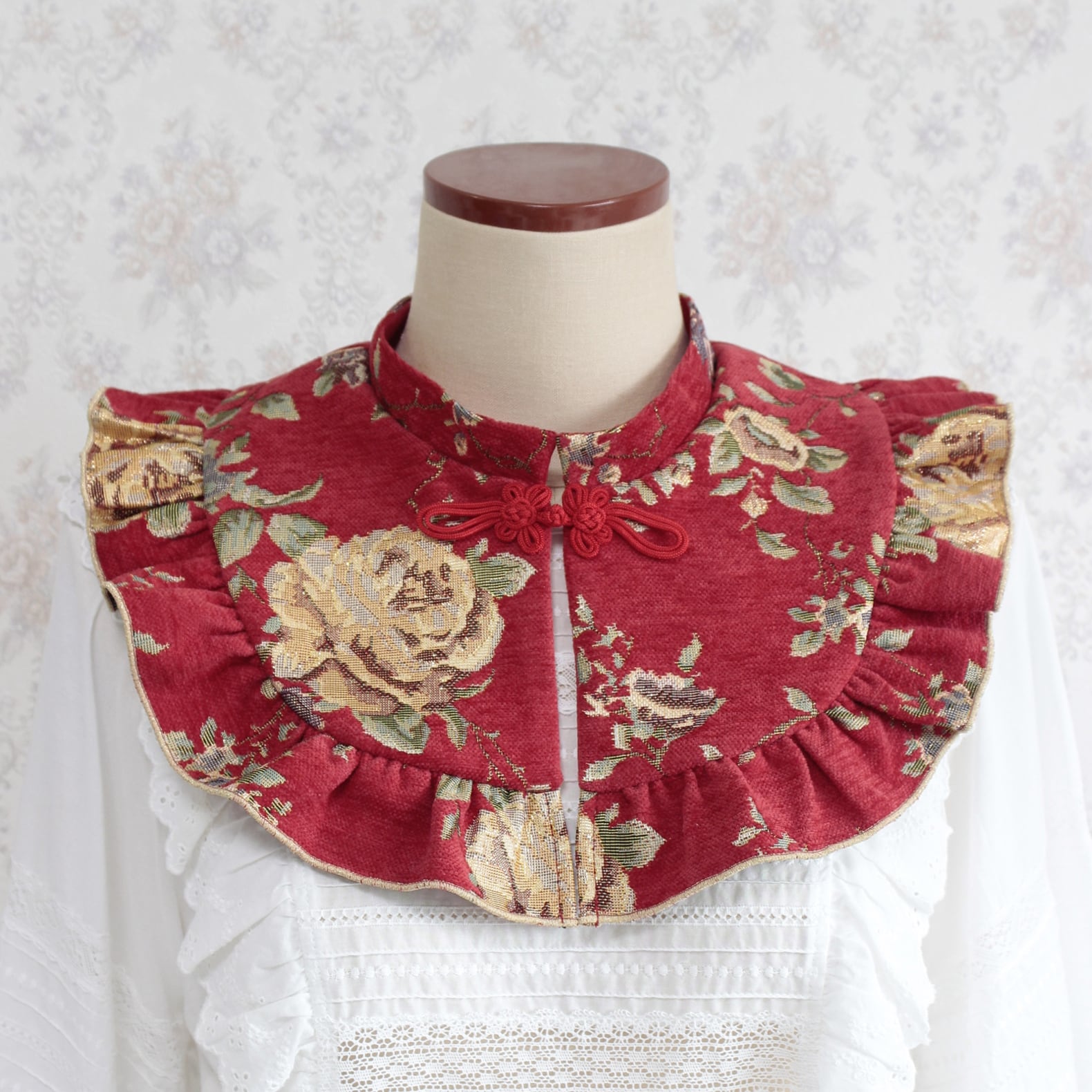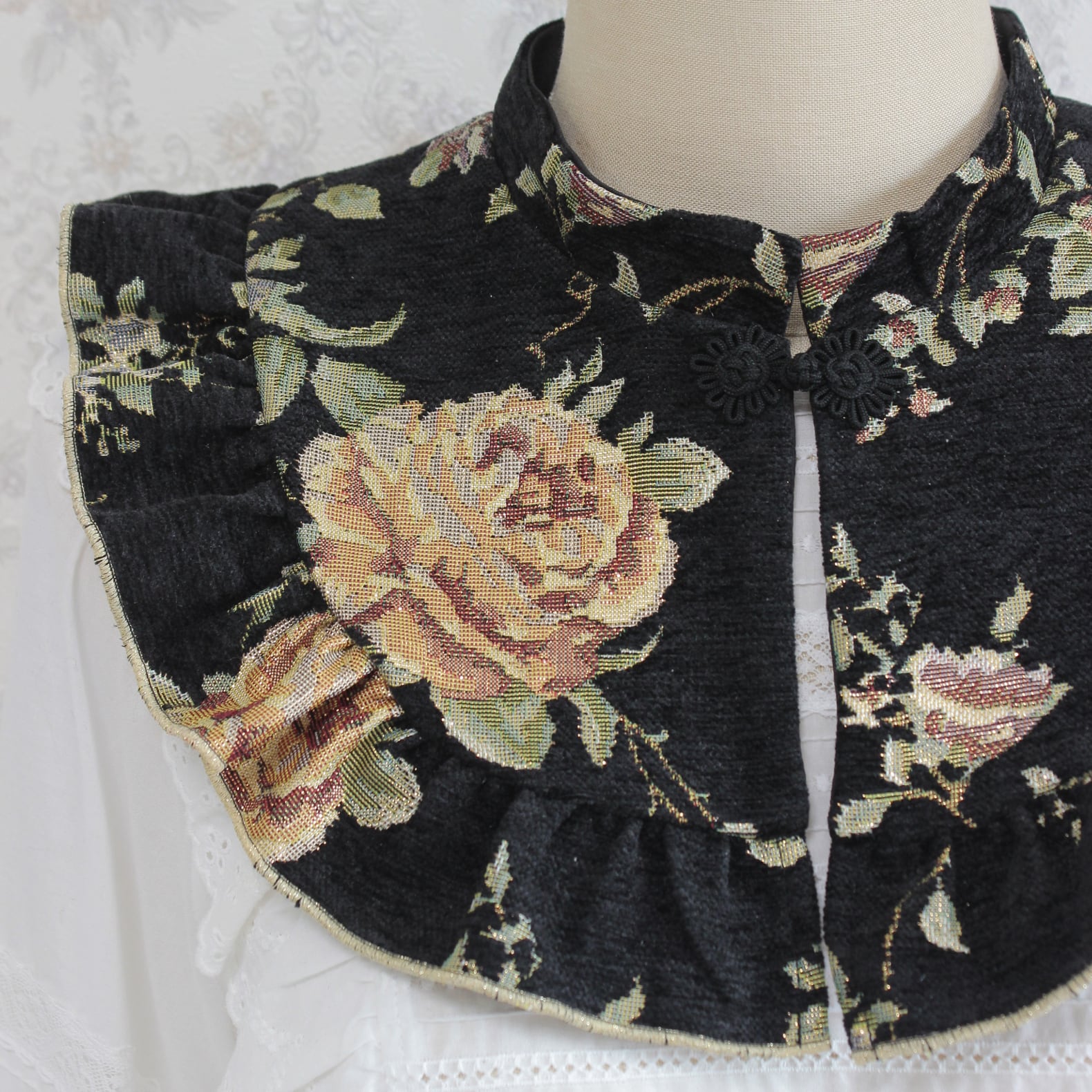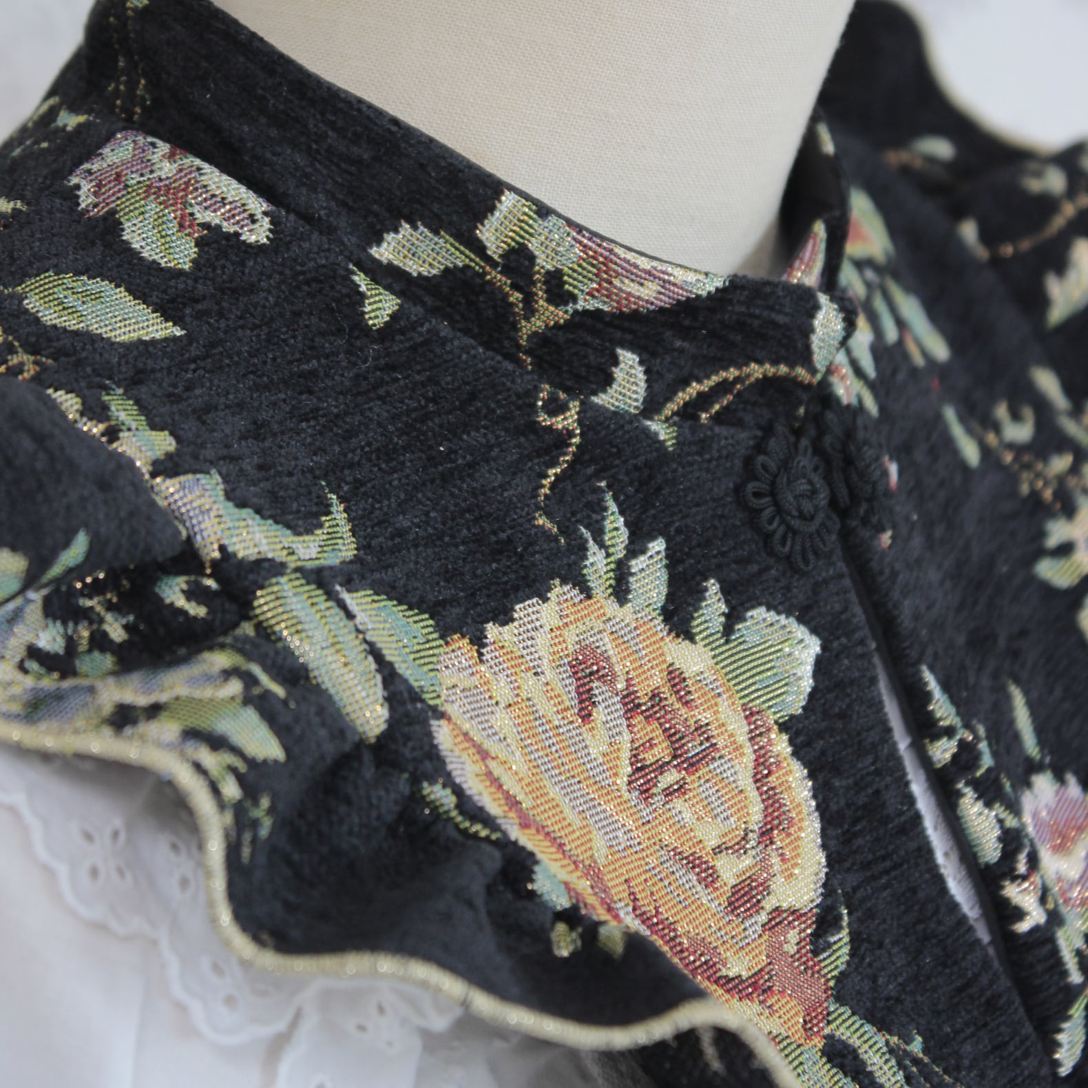 華やかな花柄のゴブラン生地にチャイナボタンをあわせたヨーク襟型の付け襟です。