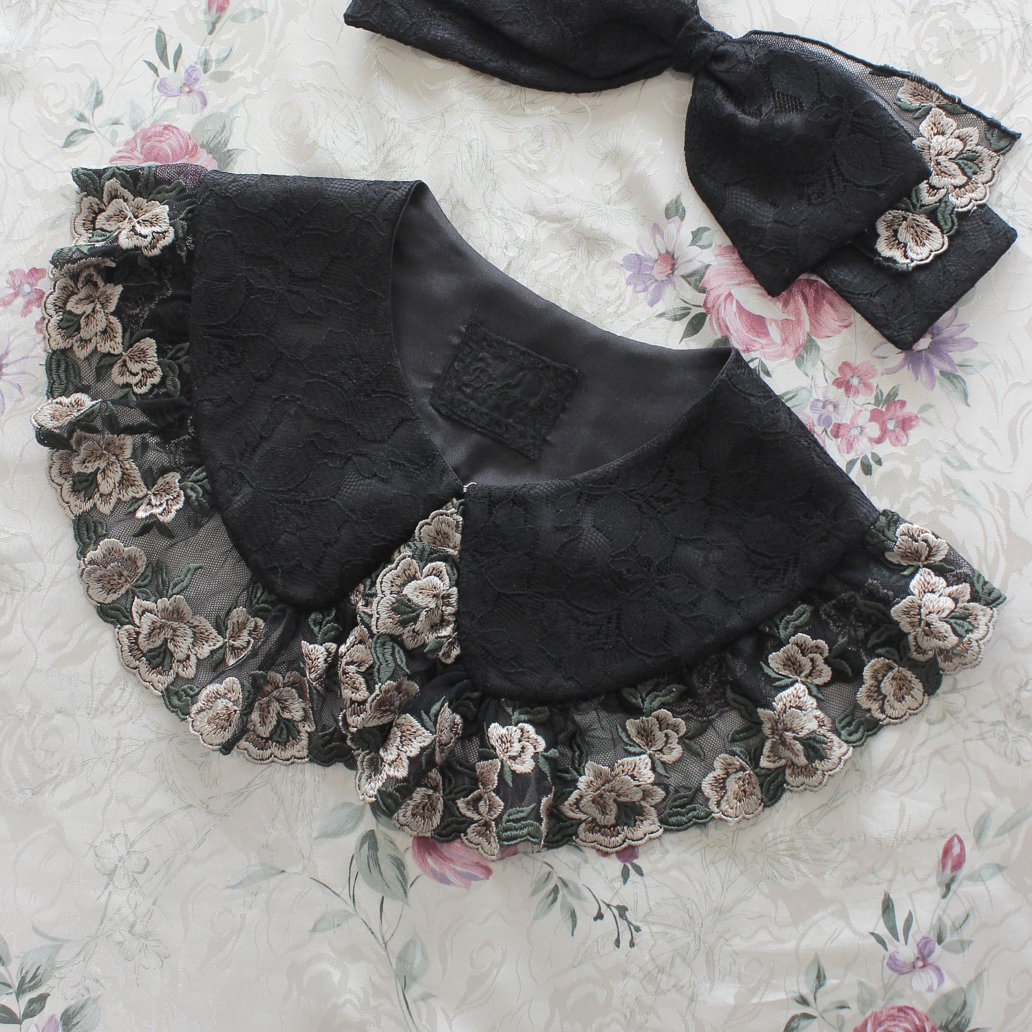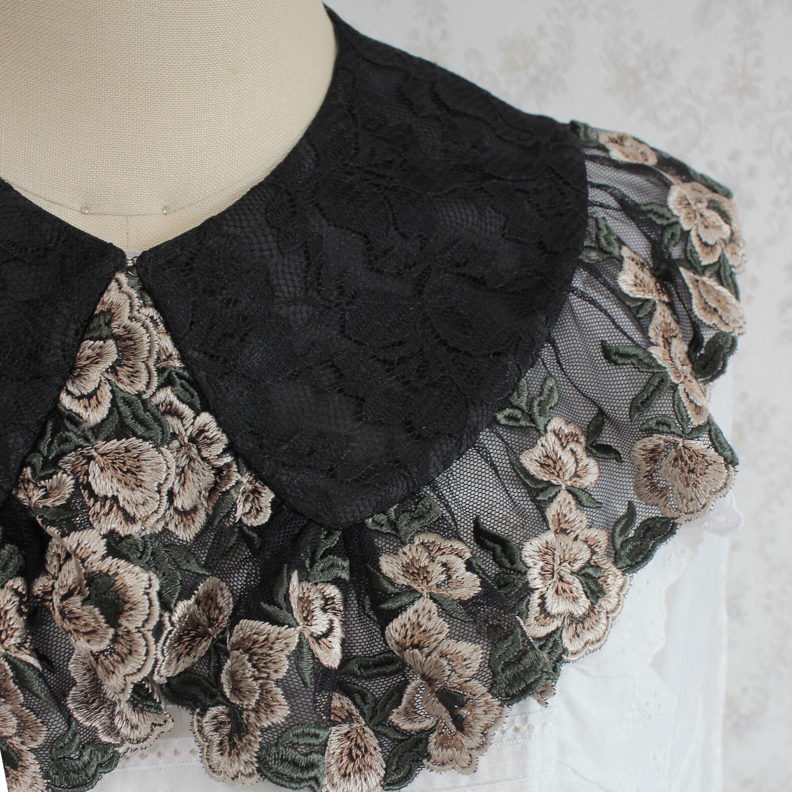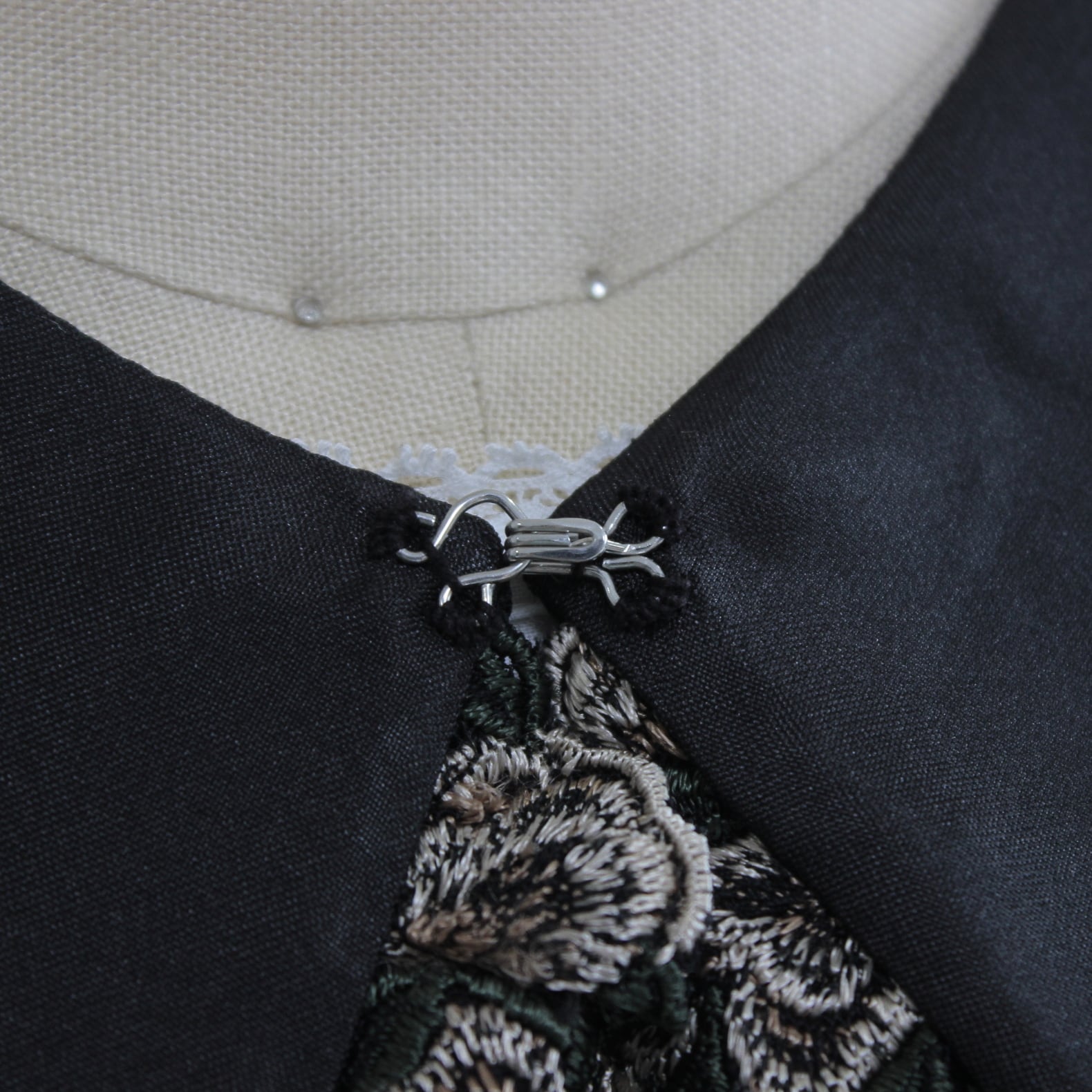 襟周りのレースは刺繍チュールレースを使用し、豪華かつ繊細な雰囲気に仕上がっています。
