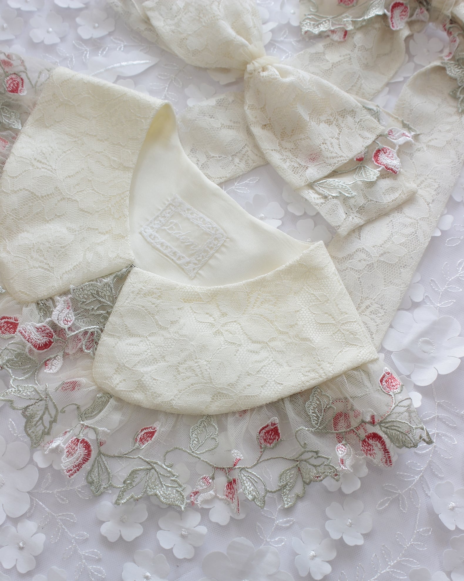 刺繍チュールレースとラッセルレースを組み合わせた