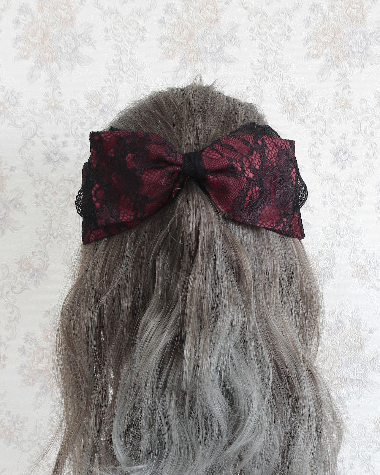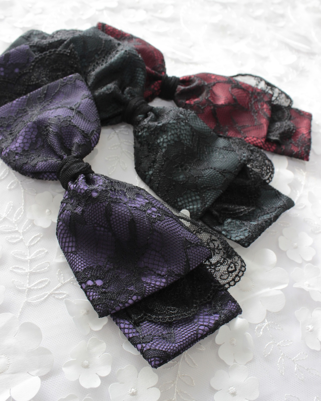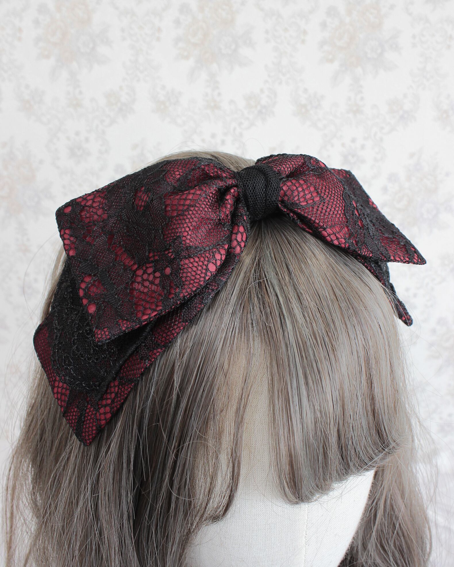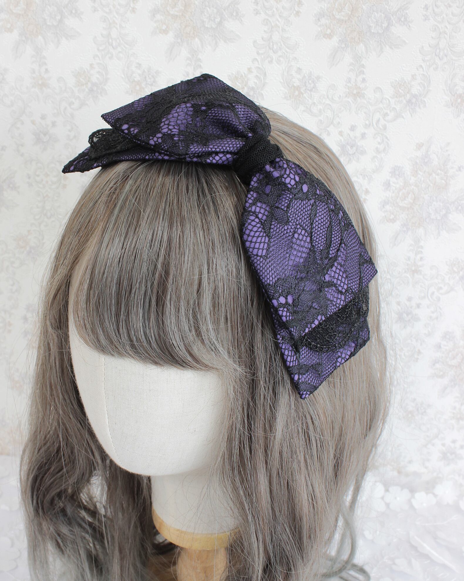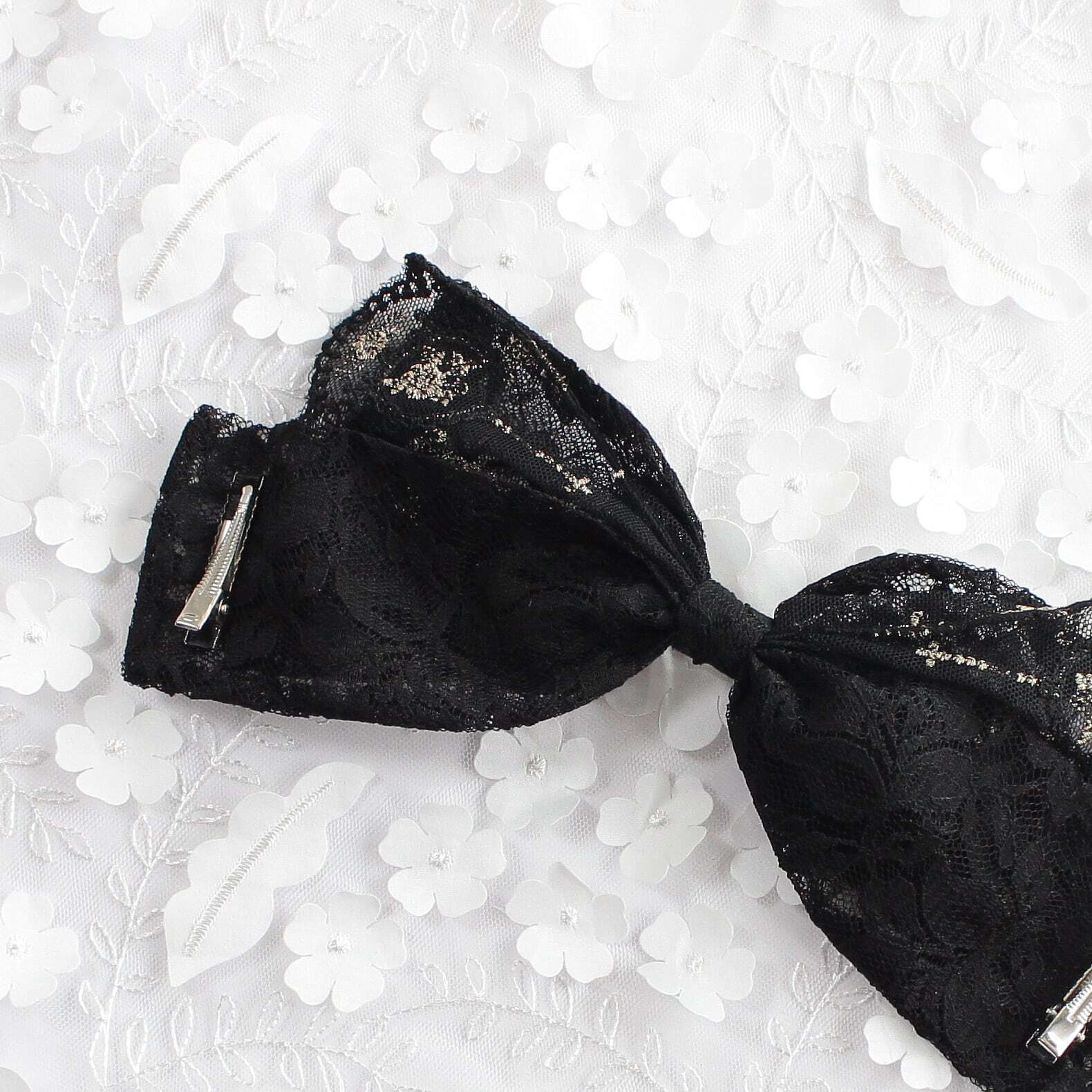 レース生地とチュールレースを組み合わせたリボン型のヘッドドレスです。