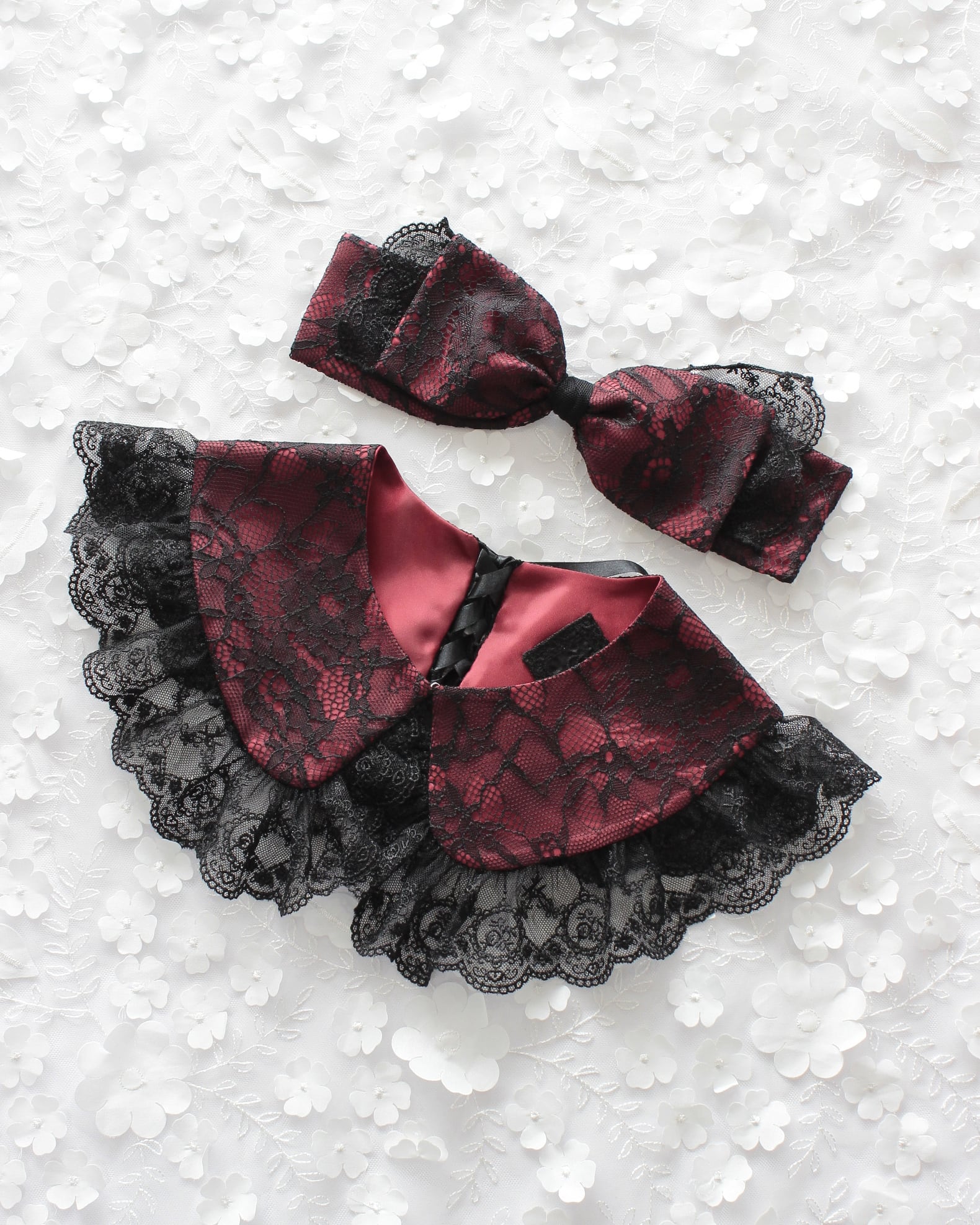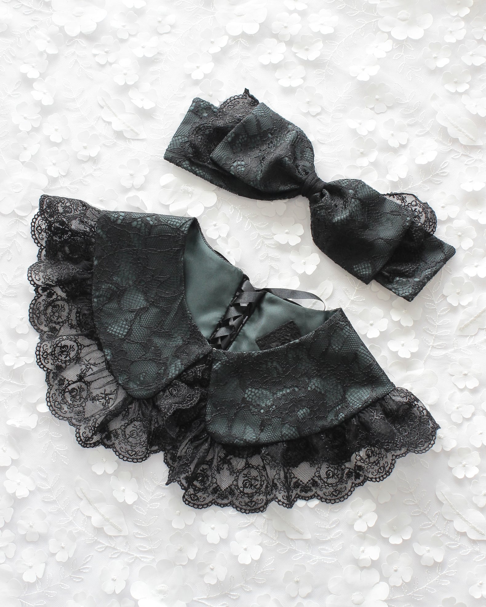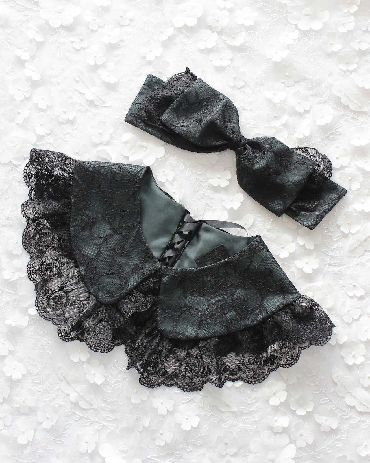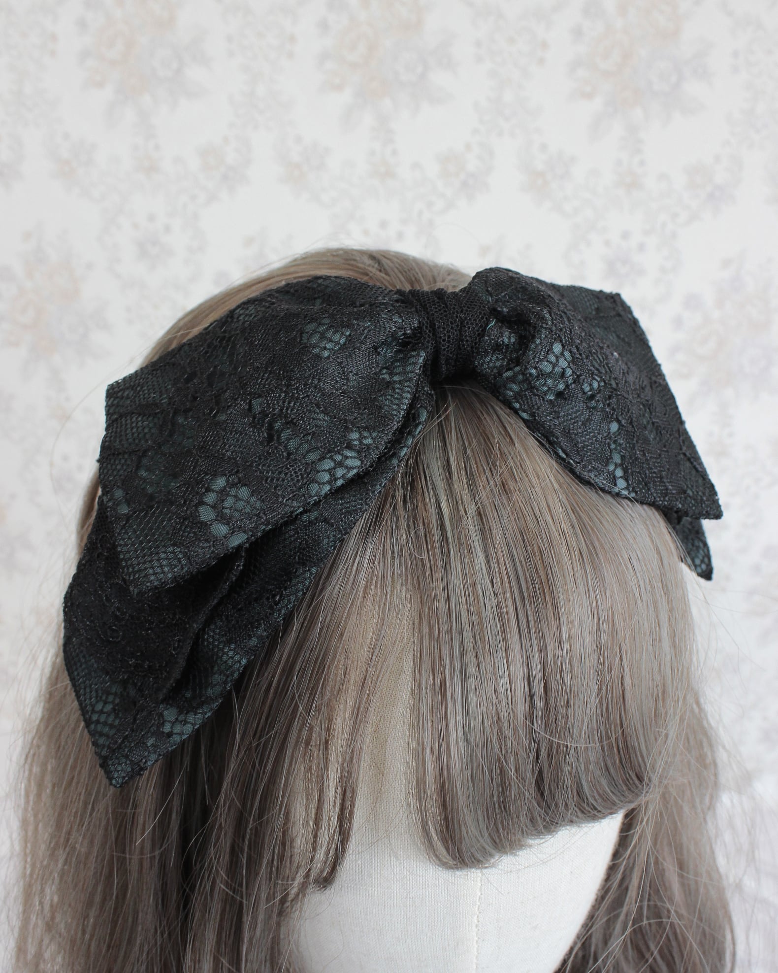 レース生地とチュールレースを組み合わせたリボン型のヘッドドレスです。