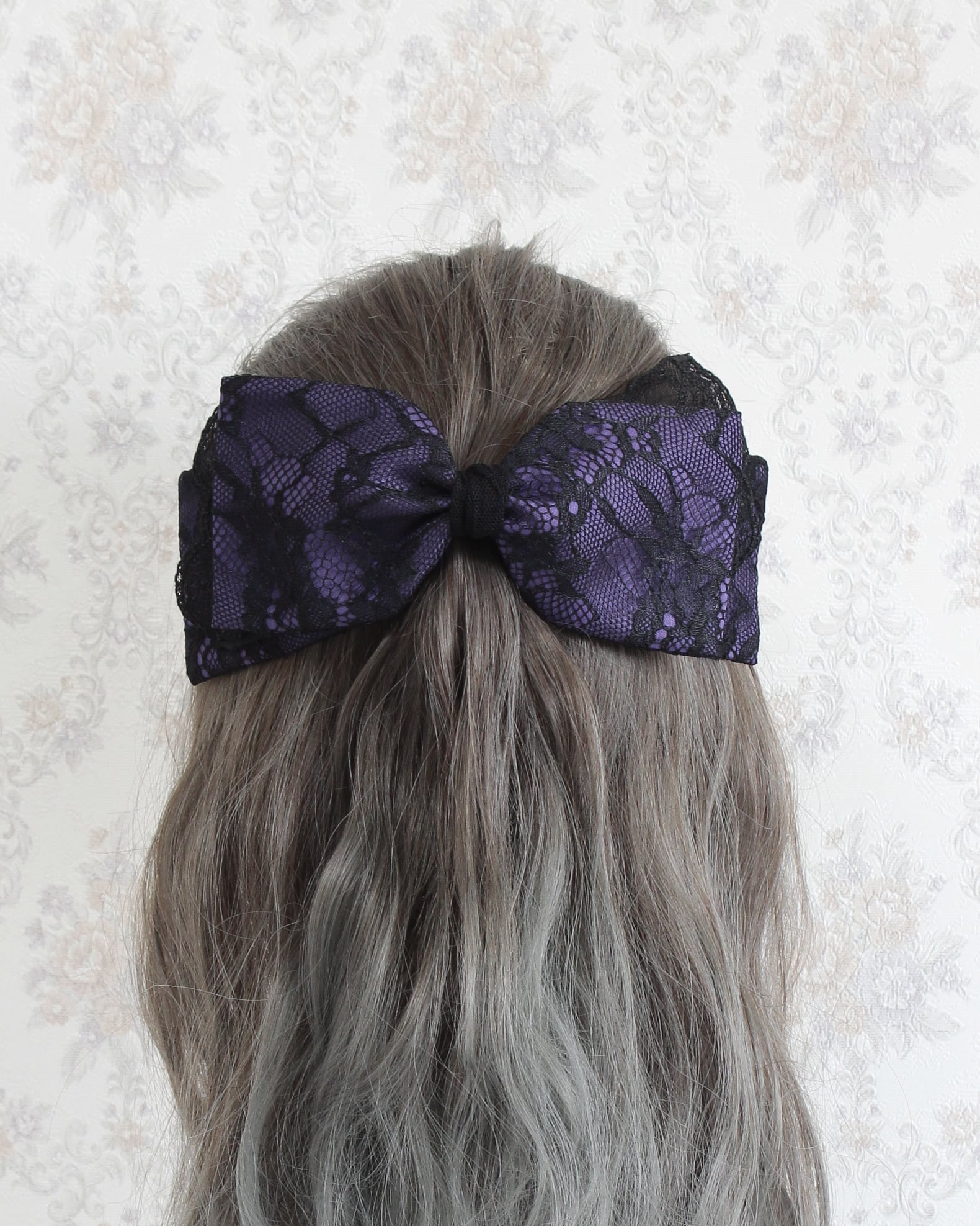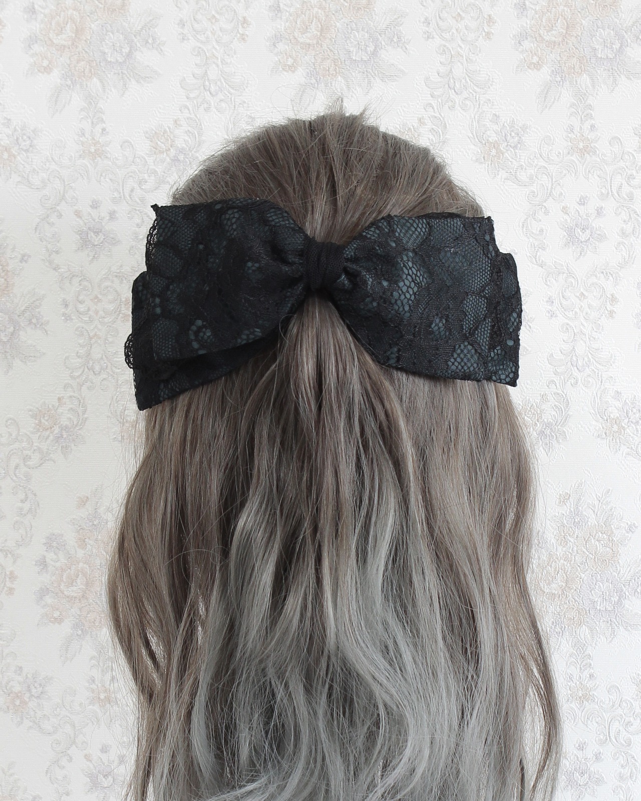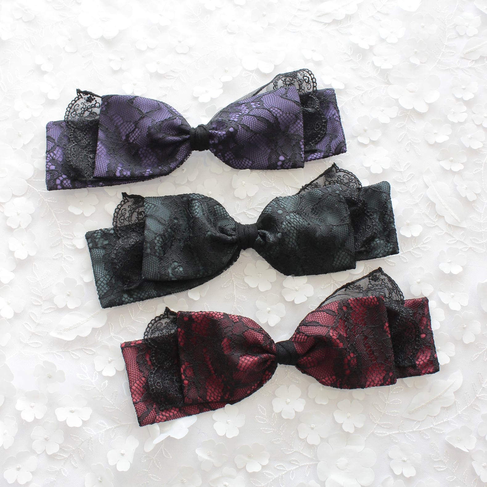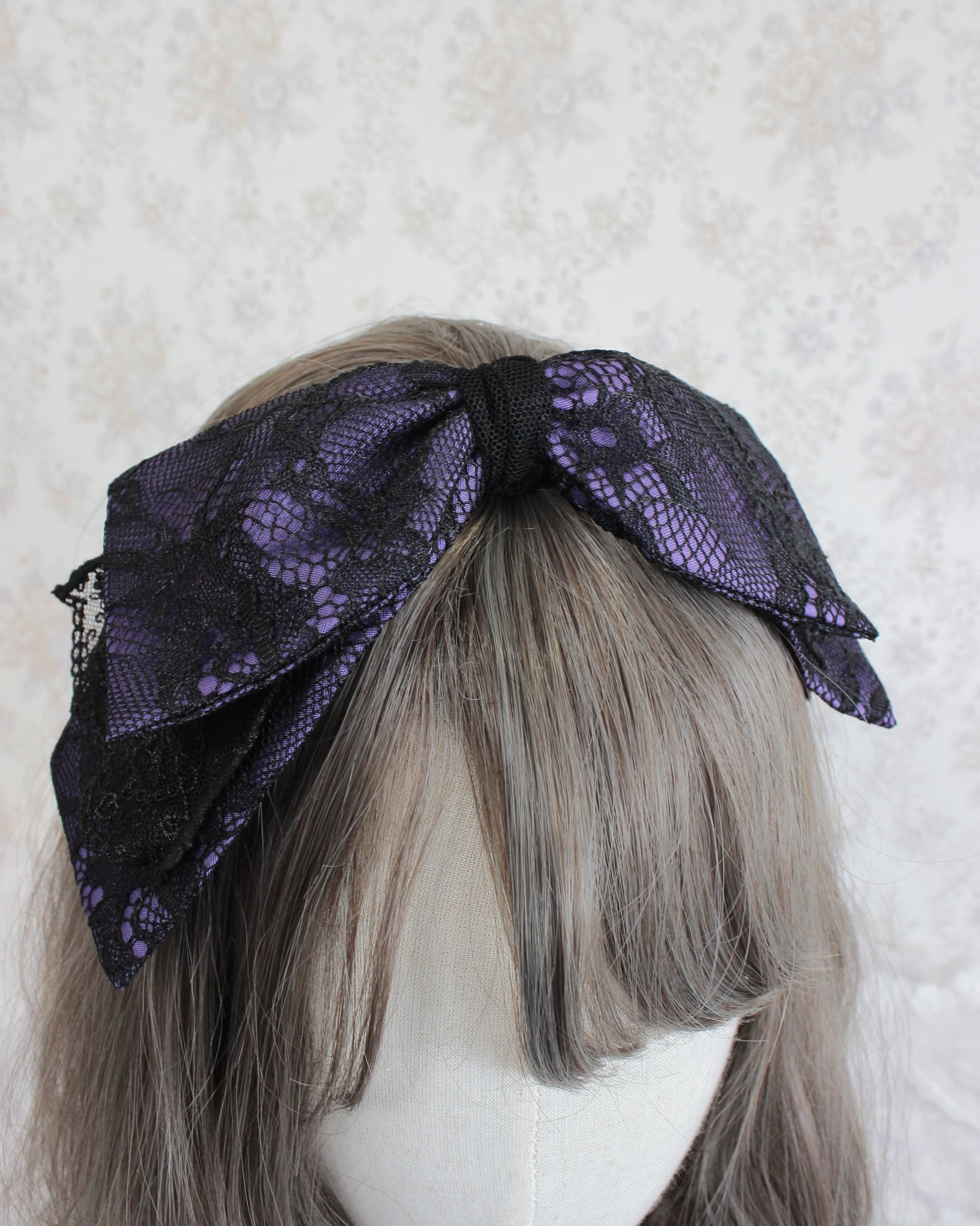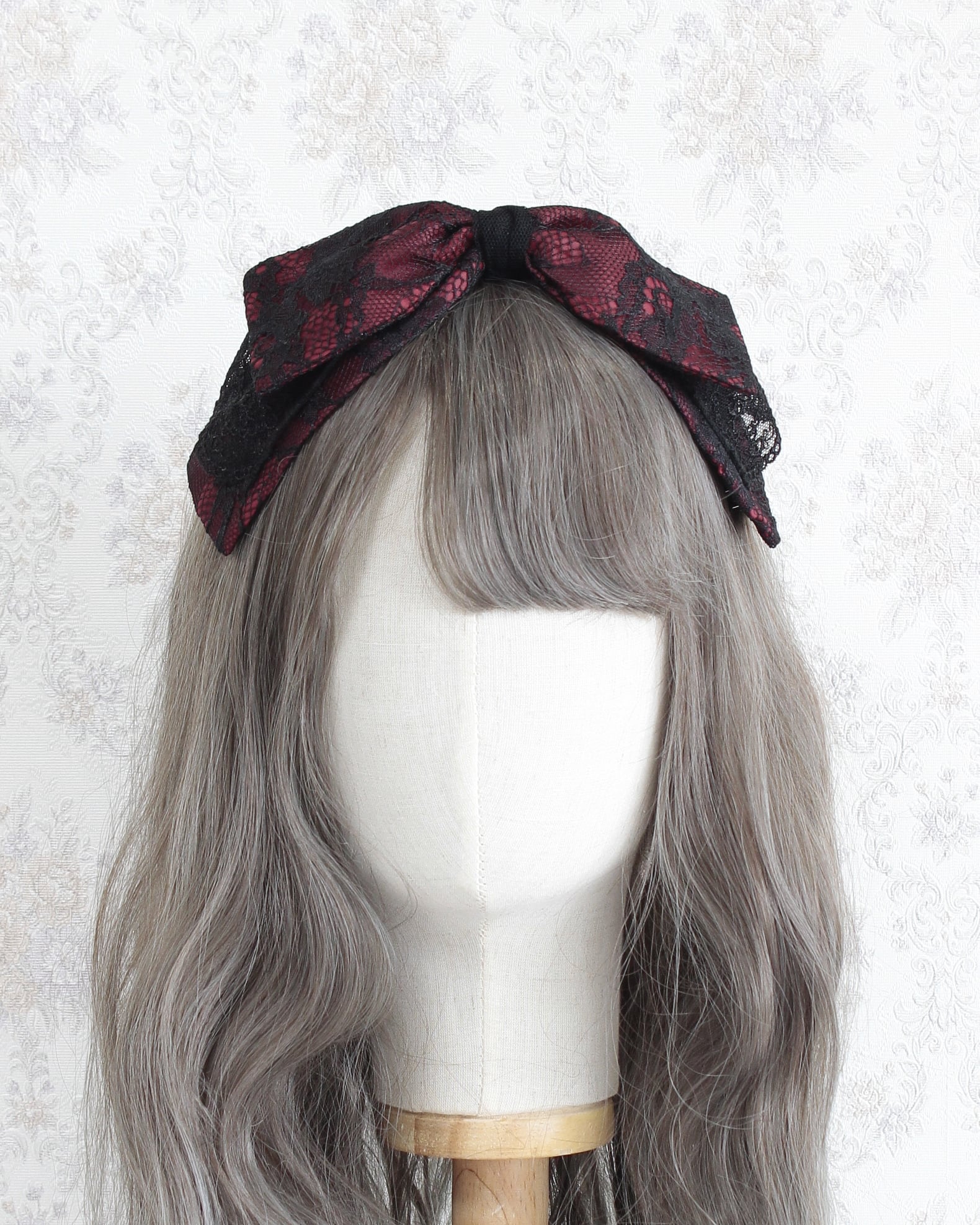 レース生地とチュールレースを組み合わせたリボン型のヘッドドレスです。