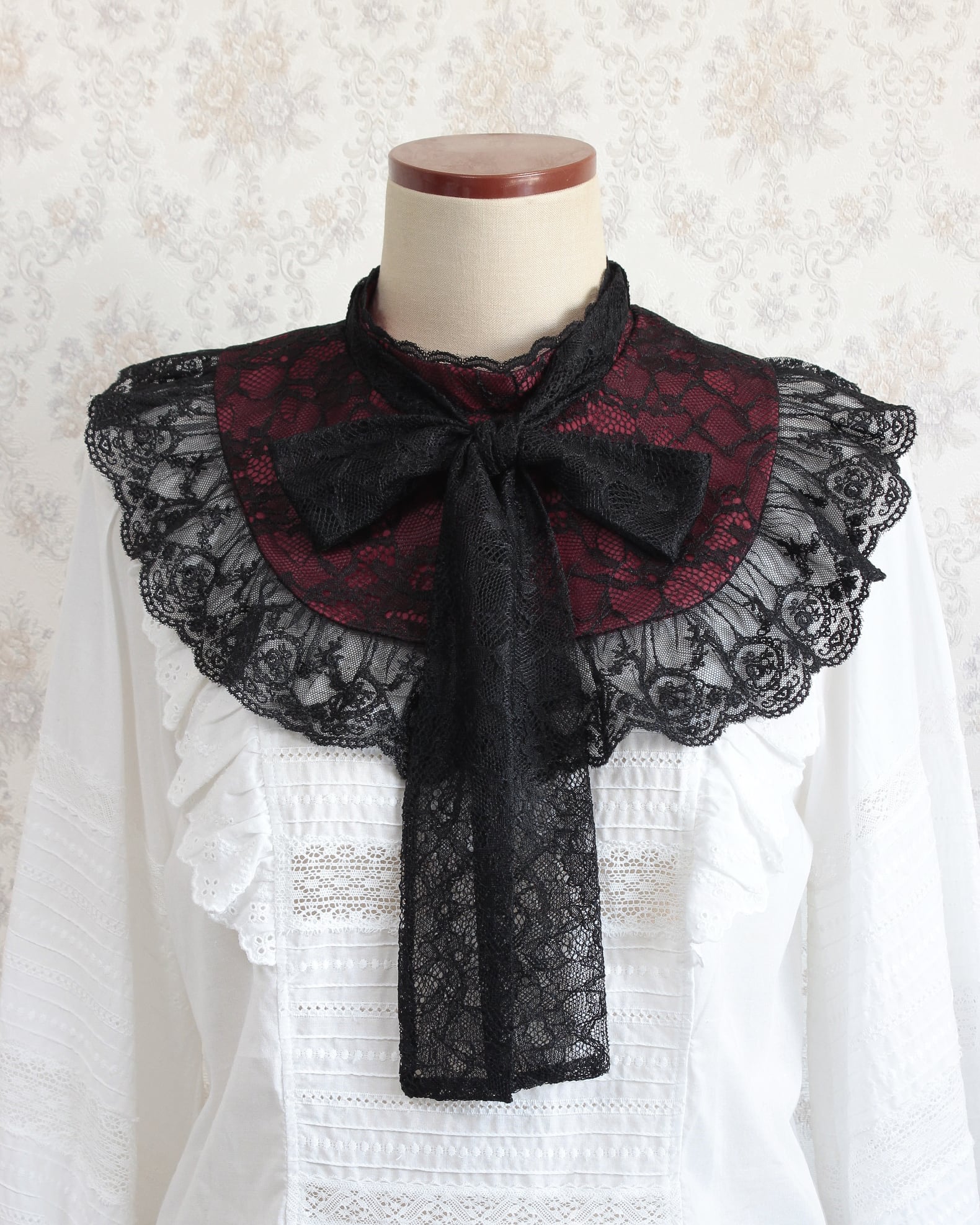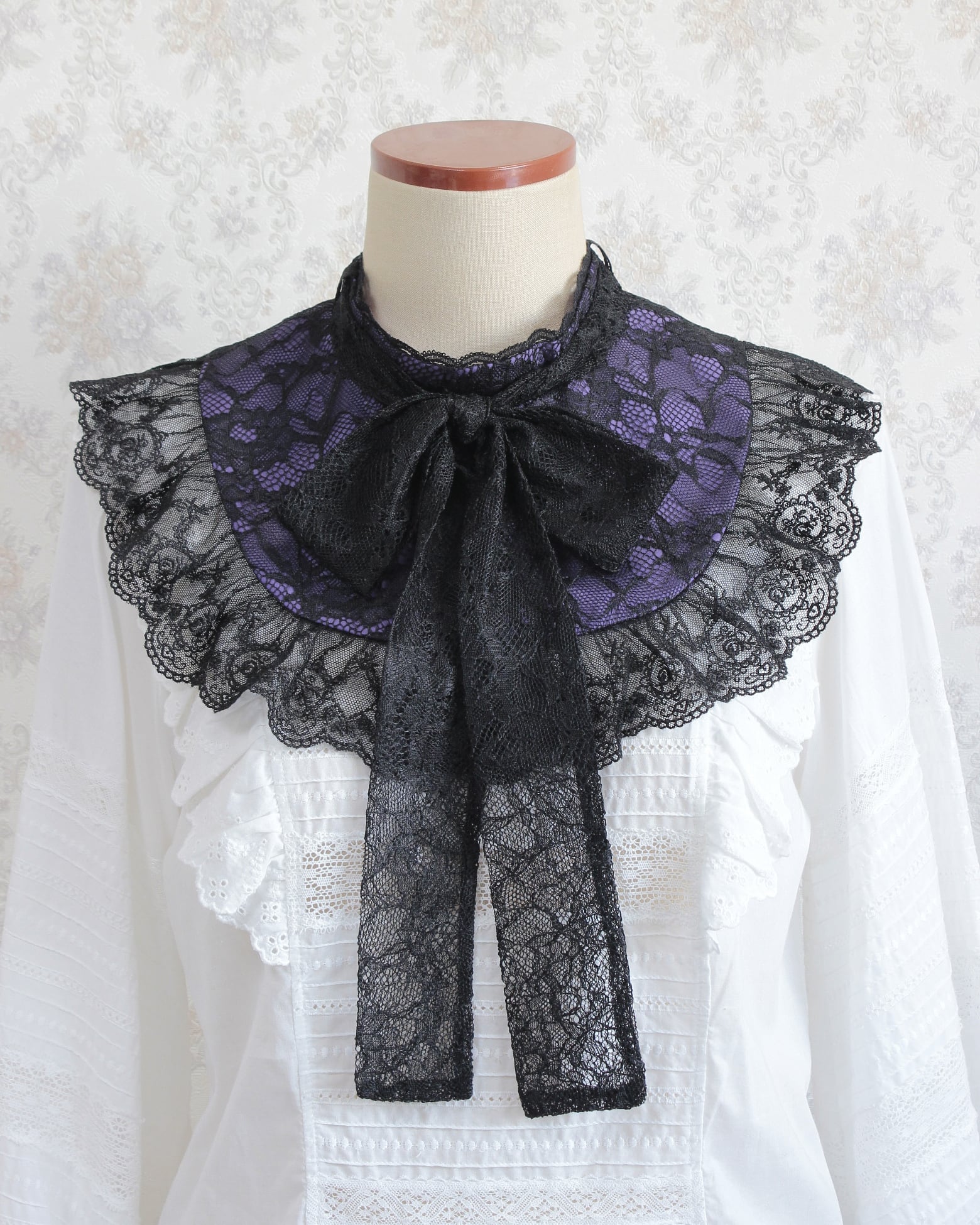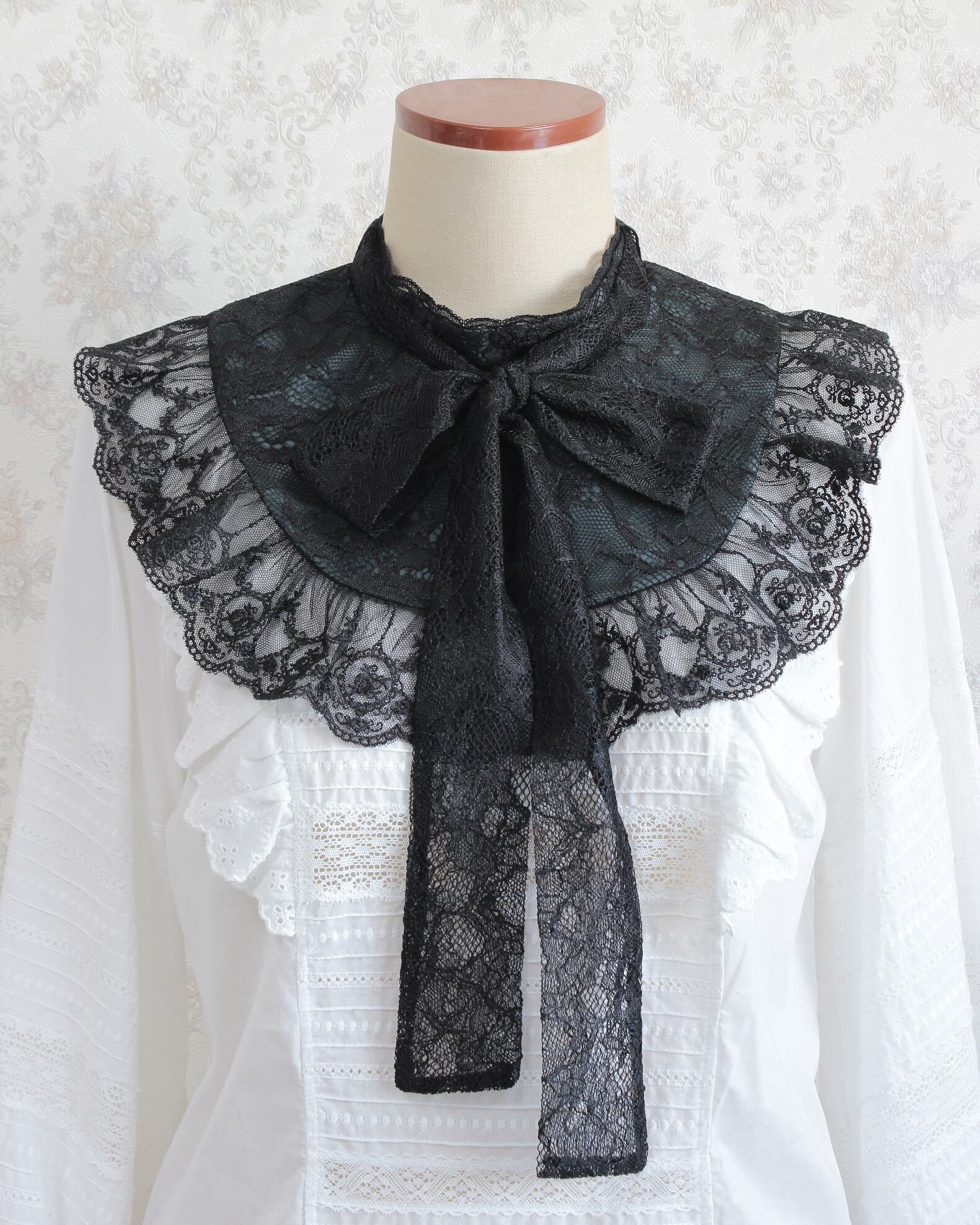付け襟/lace bowtie yokecollar (dark color)