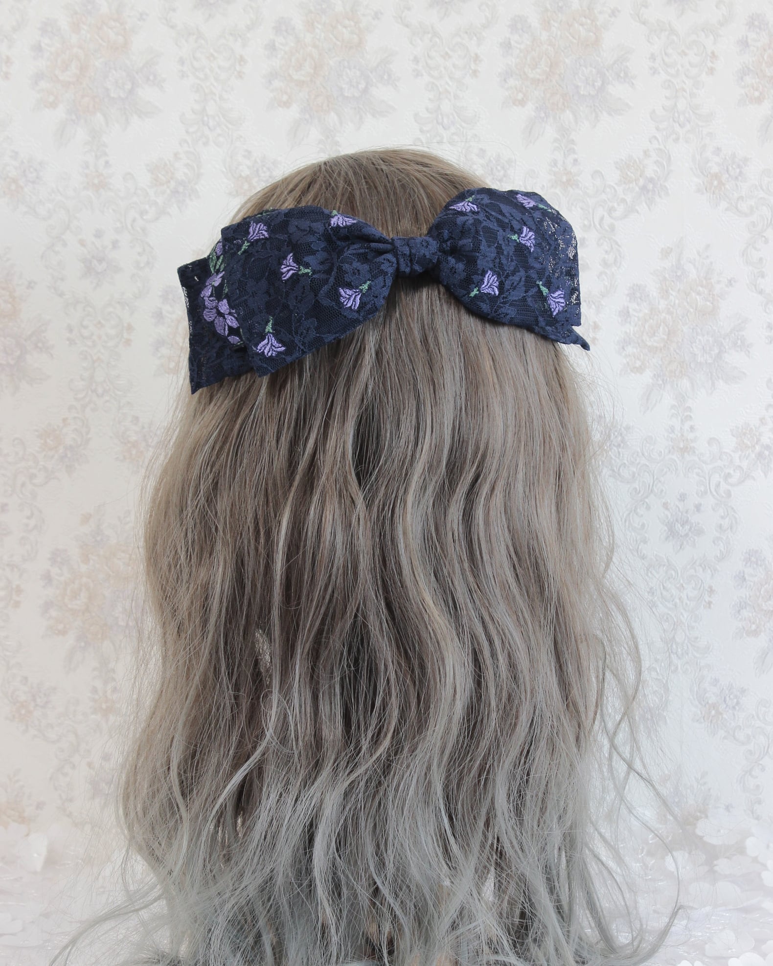 ヘッドドレス/floral lace ribbon headdress (violet navy)
