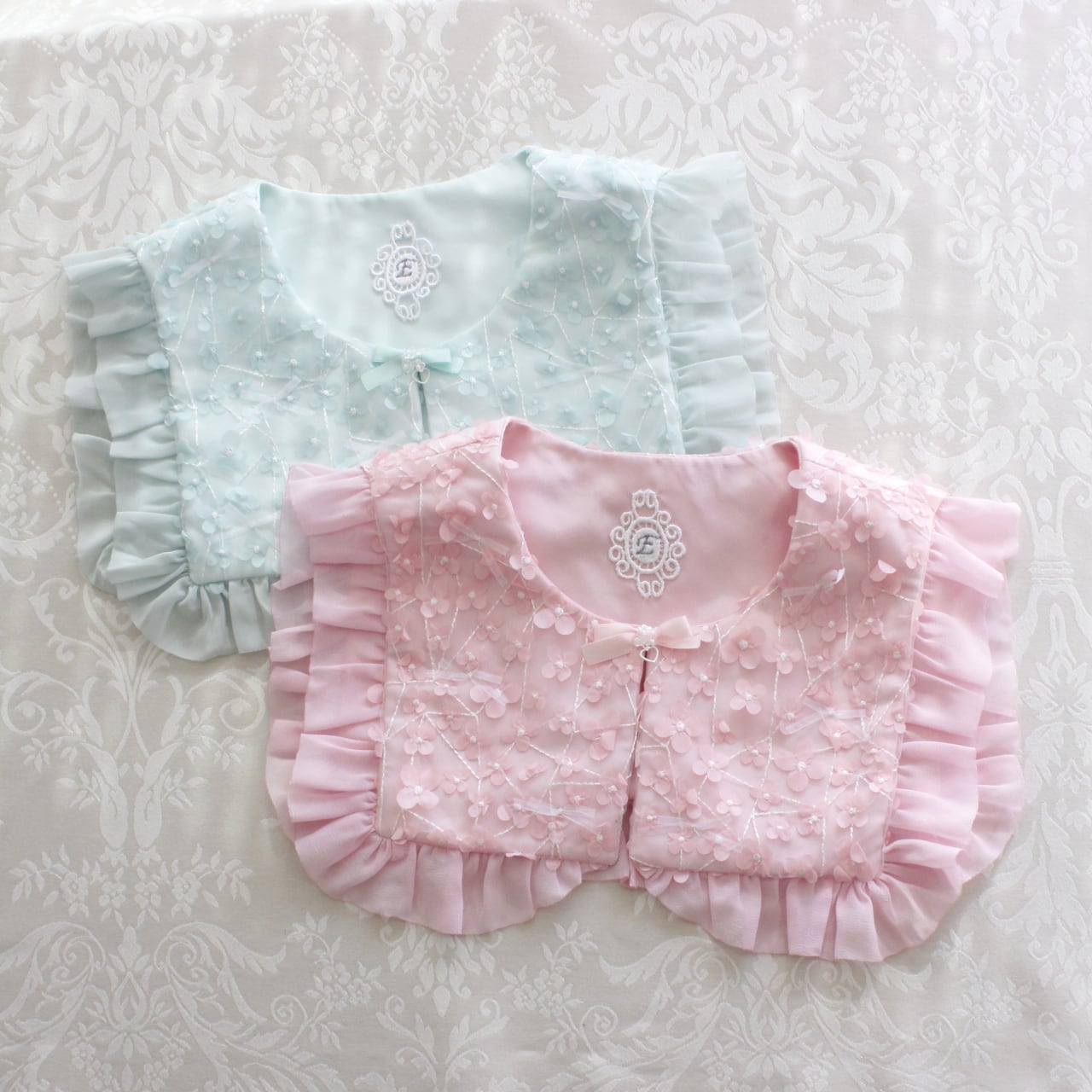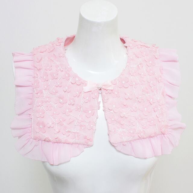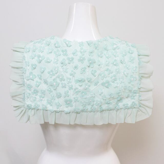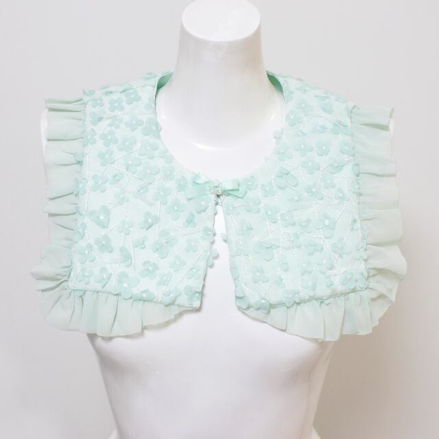 立体的なお花のモチーフがギュッと詰まった花束の様な四角型の付け襟。