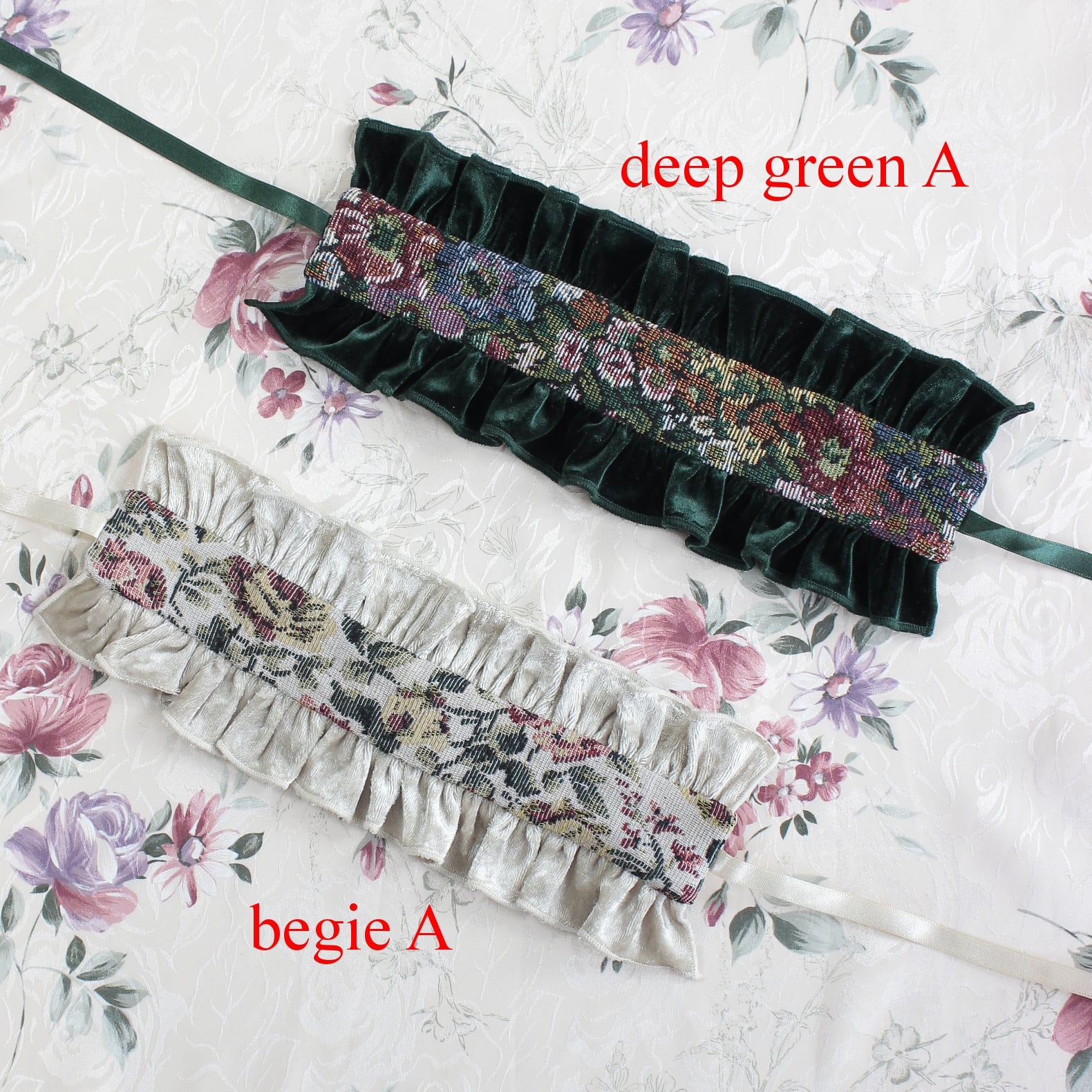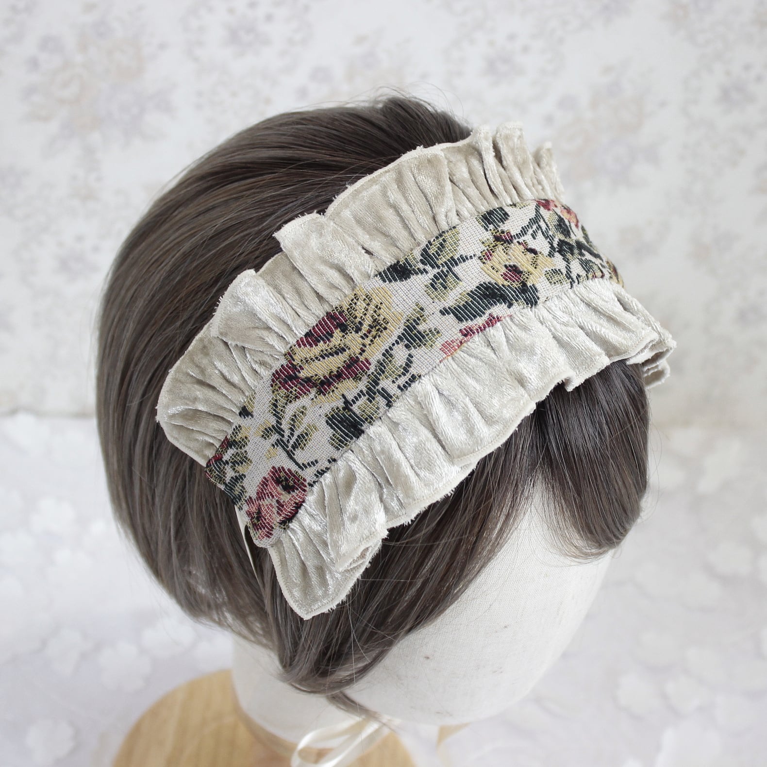 花柄のゴブラン生地とベロアフリルを組み合わせたヘッドドレスです。