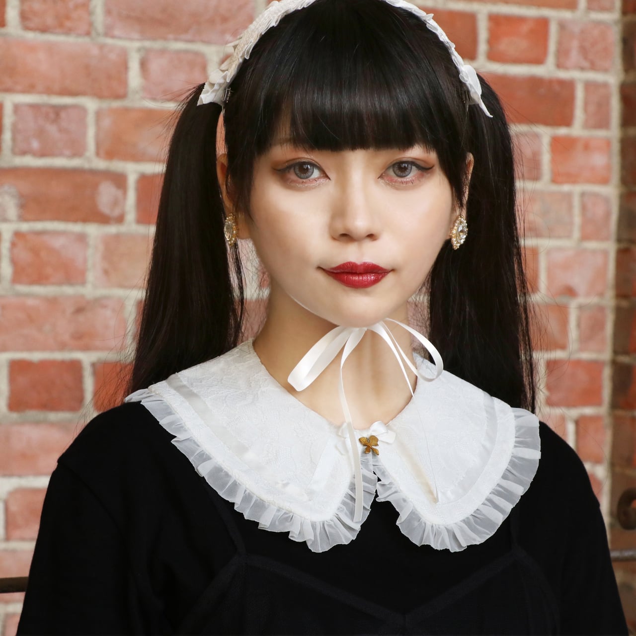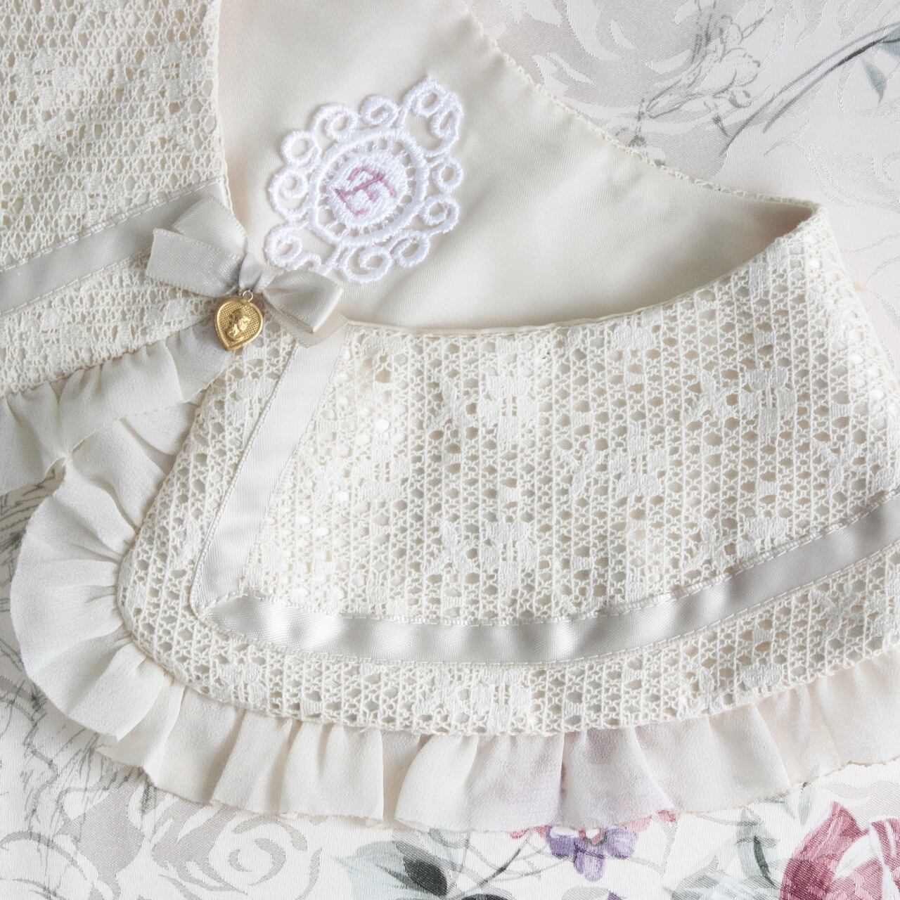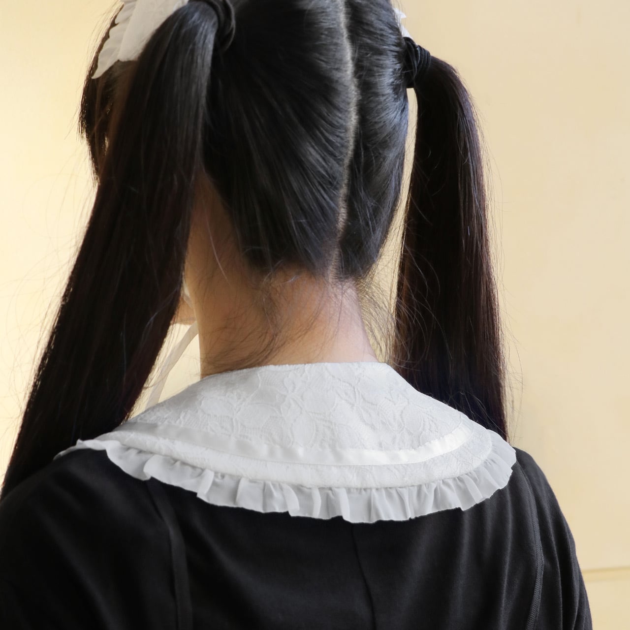 レースとリボンを使った少女服のような丸襟。